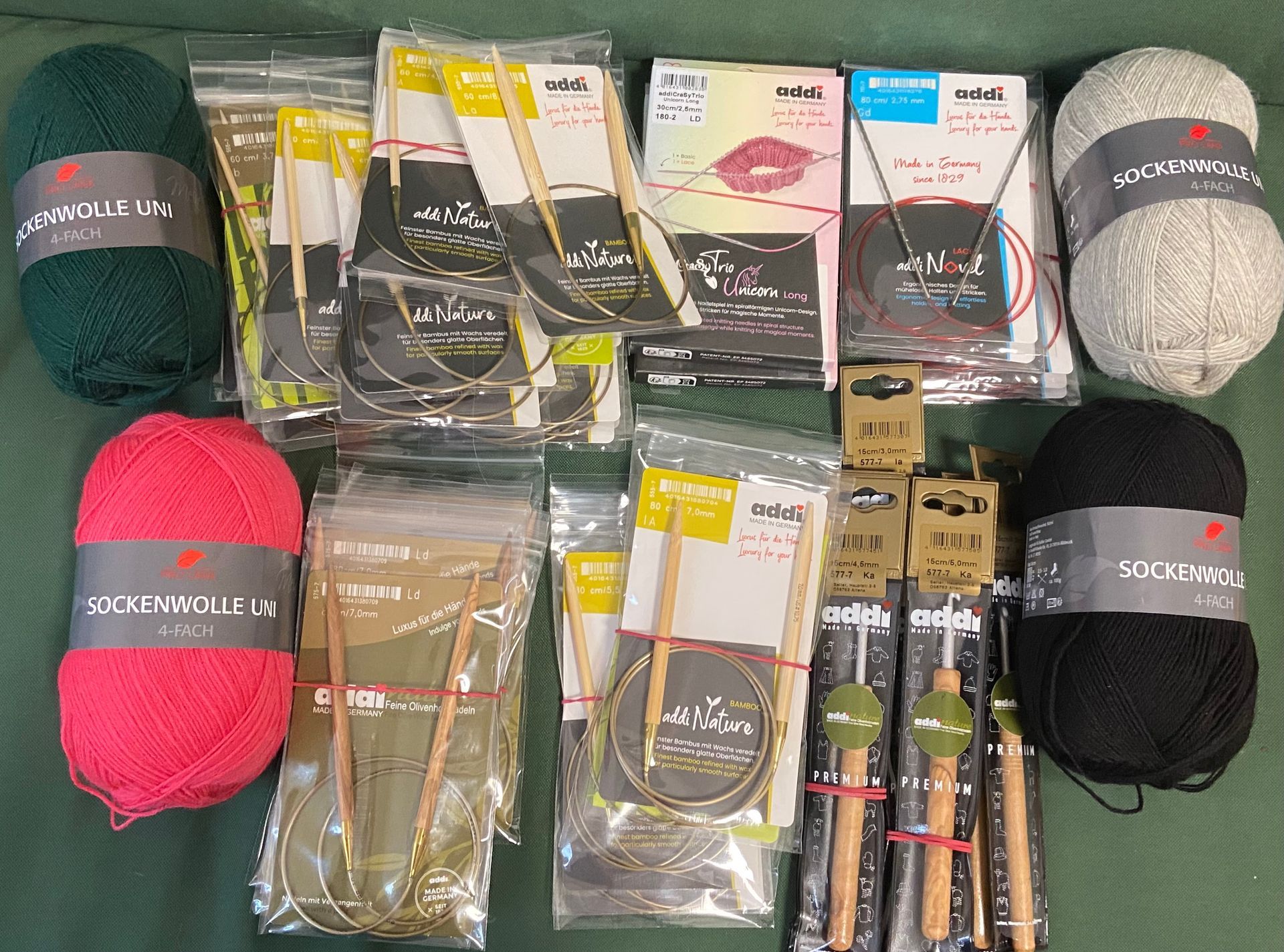 auch von Langendorf und Keller kamen inzwischen zwei Pakete an. Im Januar eine große Auswahhl Stricknadeln mit einigen Olivenholzhäkelnadeln von addi uund vier Farben Sockenwolle von Prolana, von dene zwei neu im Sortiment sind. Gestern kam dann noch die Nachlieferung mit weiteren Stricknadeln von addi an.