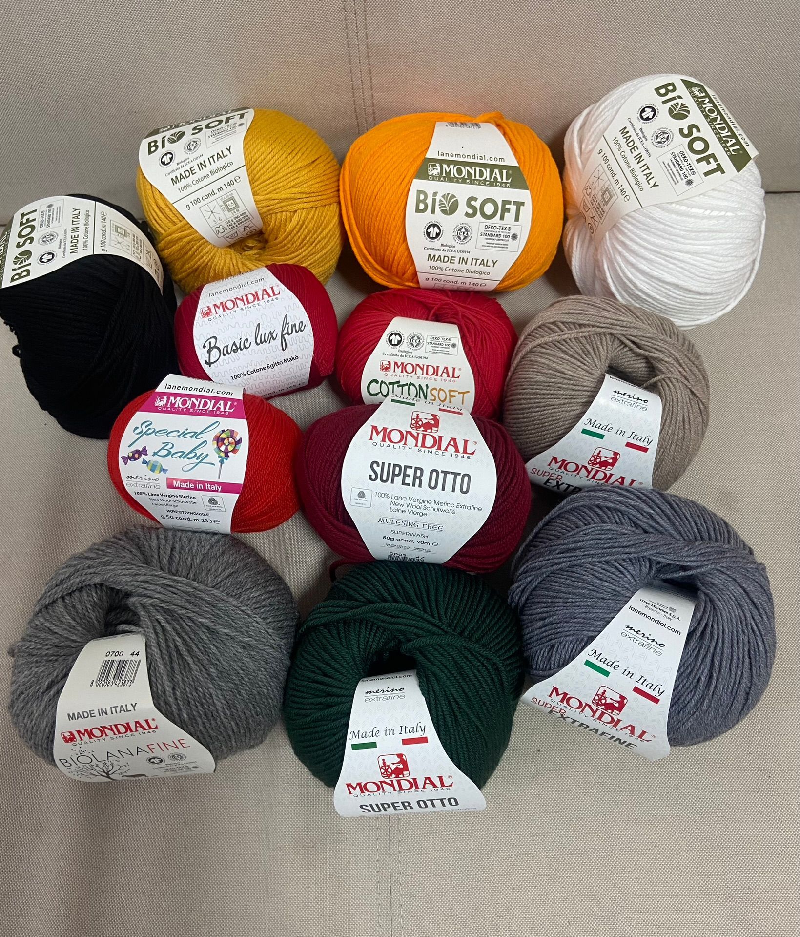 Donnerstag kam neue Ware von Mondial an. Die beiden Farben von Extrafine und die Farbe von Biolanana fine, Cotton Soft Bio und Basic Lux fine, sowie eine Farbe Superotto, schwarz und weiß von Bio Soft füllen entstandene Lücken aus. Das Grün von Super Otto, das helle Rot von Special Baby und Gelb und Orange von Bio Soft sind ganz neu im Laden und ergänzen das Farbsortiment. Die Auswahl wächst also mit jeder Lieferung.