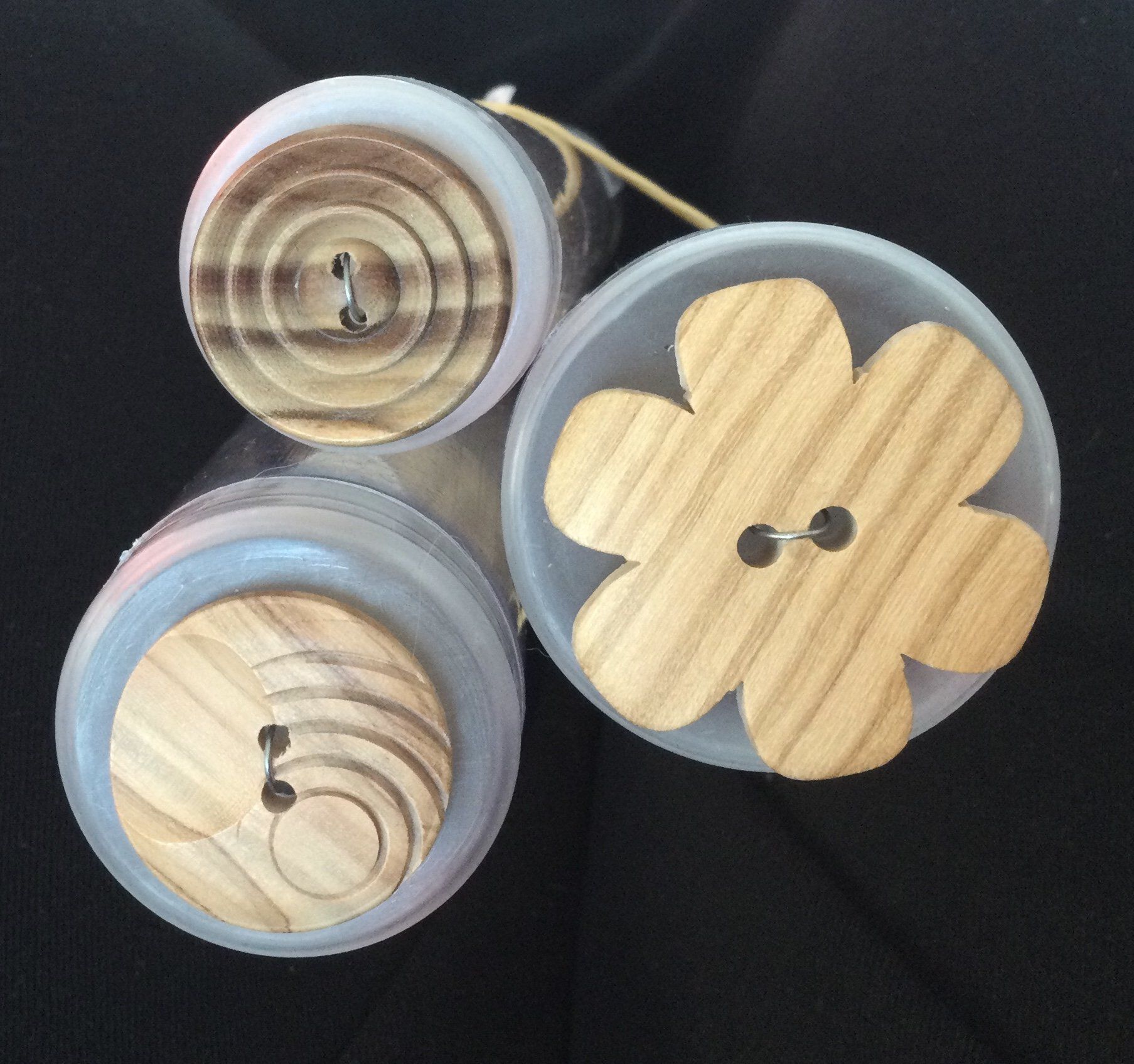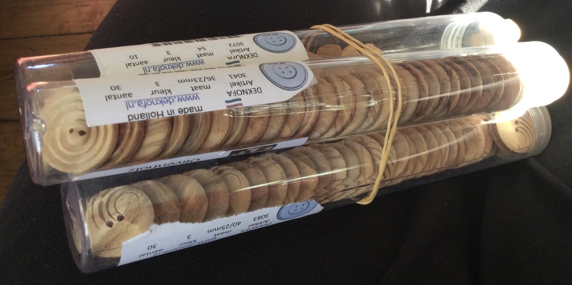 Ich war am Sonntag auf der h+h in Köln, abgesehen von Knöpfen kann man dort nur ordern. Ich habe für euch ein paar Knöpfe eingekauft, die mein besonderes Sortiment erweitern sollen. Der dunklere Knopf ist aus Olivenholz und in vielen Schattierungen vorhanden. die anderen Knöpfe sind aus anderem Holz, auch sie sind nicht identisch. So können gut zum Strickstück passende Knöpfe gefunden werden.
